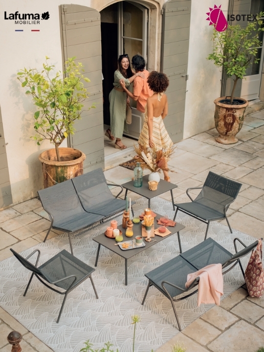 Structure : tube Ø 22mm acier galvanisé. Peinture 100% polyester haute tenue aux UV - Coloris titane