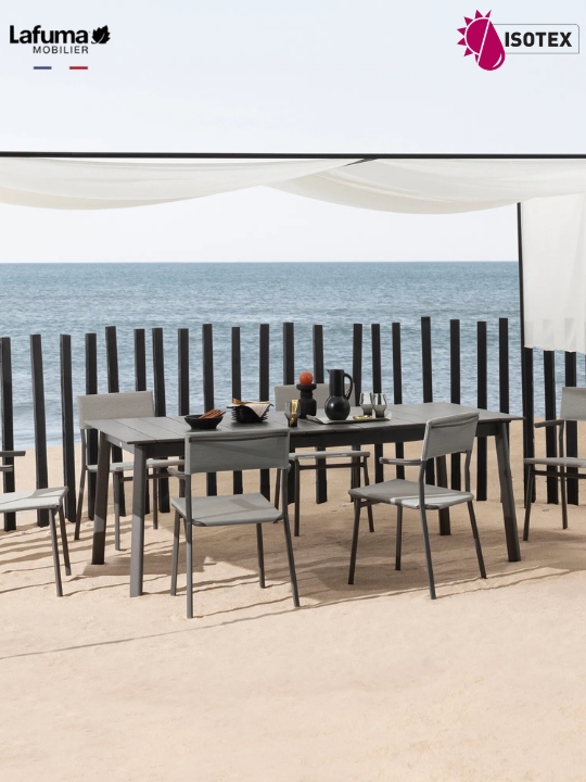 Fabriquée en France, dans l’usine Lafuma Mobilier de l’Ain, la table Oron bénéficie d’une conception haut de gamme :
