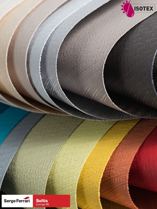 Protégez vos espaces extérieurs avec la toile Soltis Lounge 96 de Serge Ferrari. Cette toile sur mesure, fabriquée en France, est la solution idéale pour vos projets de stores, pergolas et voiles d'ombrage.