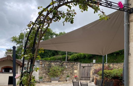 Découvrez notre réalisation sur mesure à La Côte-Saint-André (38260) : une voile d’ombrage Eliante STAR avec toile Soltis 96 coloris taupe. Installation haut de gamme idéale pour ombrager élégamment vos extérieurs en Nord Isère.